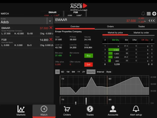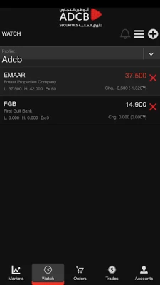 You will need an account with both ADCB as well as ADCB Securities in order to trade using this app. Note: For more information, please visit www.adcbsecurities.com or call our dedicated contact center at 600 50 3325 (within UAE) or +971 2 6211608 (outside UAE). ADCB Securities is a wholly owned subsidiary of ADCB with paid up capital of AED 71 million. ADCB Securities was formed under UAE laws and is regulated by the Securities and Commodities Authority (SCA), the Abu Dhabi Securities Exchange (ADX) and the Dubai Finance Market (DFM). Regulated by Securities and Commodities Authority – License no. 604028.