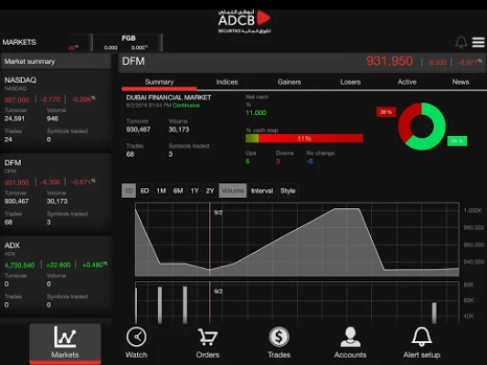 The ADCB Securities app is a mobile trading tool for you to track the market in real time, analyze trends as they happen, and take action when the time right. With this mobile application you can easily access local markets and place your orders from wherever you are, at any time you want (local markets timing) and in the most friendly and secure environment.