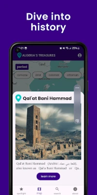 Whether you're a curious tourist or a local eager to explore more of your country, Algeria's Treasures helps you uncover the beauty and history around you. Simply open the app, and you'll instantly see the top 10 sites worth visiting nearby. Challenge yourself with our cultural quizzes to deepen your understanding of Algerian heritage while planning your next adventure. With detailed information and clear directions at your fingertips, you're always ready for your next Algerian adventure.