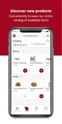Select benefits include: - No-headache ordering: access our full catalog & re-order easily - Keep everything together: delivery days, cutoff times, and order updates, all in one - place - Get in touch anytime: communicate directly with your rep in the app