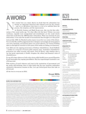 If it matters to Australia then it matters to AQ. Know science, know politics, know Australian Quarterly.