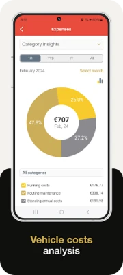 - Visual Insights: Charts like “Monthly Breakdown,” "Category Insights," "Daily Average" expenses, and "Operational Cost Per Distance" offer a clear overview of your financials.