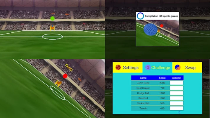 Brief descriptions as follow. (1) Compile 6 3D games into a collection and offer them at a discounted price. (2) Tap the screen to bring up a menu. Select "Misc." from the menu, and you can choose different games on the "Swap" page. The scores of each game in this collection can be shared. (3) If the buyer does not know how to operate each game, he or she can go to the Google Play Store to refer to the explanations of each game or combo game. Due to the limited number of words that can be accommodated, they cannot be listed here.