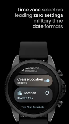 Additionally, when the location is set, moon phase complication will adjust moon icon angle to give real visual from observers position (detailed icon)