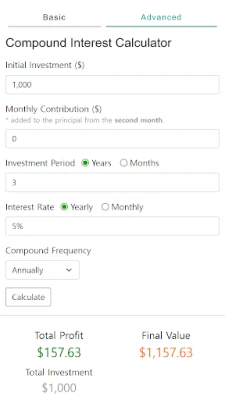 Use our Compound Interest Calculator to forecast your future profits and for investments like stocks and cryptocurrencies!
