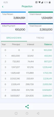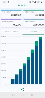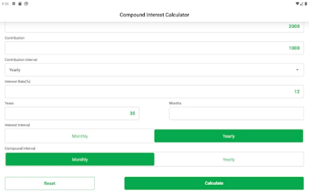 Interest calculator / compound calculator / Compound interest calculator application helps to analyse the growth of your investments based on the inputs you provide in the form of initial investment, contributions, interest rate, Compounding frequency etc.It provides an easy to follow yearly breakdown of your investment growth and balance.