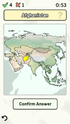 Customizable quizzes allow you to choose which Asian countries to test, as well as the topic. Past results for each country are displayed to highlight your progress at each topic.