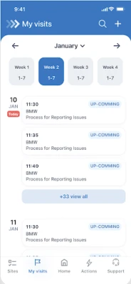 my visits menu giving access to a detailed of control planning