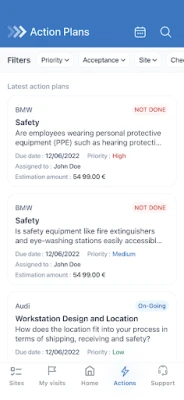 menu du plan d'action avec des détails sur tout plan d'action ou bonne pratique.