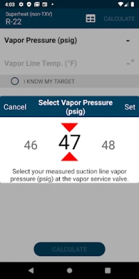 Instant mobile refrigerant charge calculator for HVACR applications.