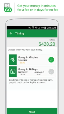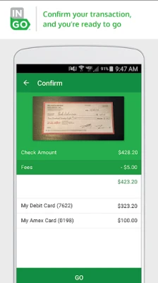With the Ingo® Money App, cash paychecks, business checks, personal checks—almost any type of check—anytime, anywhere. Get your money in minutes in your bank, prepaid card and PayPal accounts. Choose to pay credit card bills or split a check and fund multiple accounts. If your check is approved, the money is as good as cash and safe to spend on purchases and payments made in-store, online and in Google Pay. Terms and fees apply.