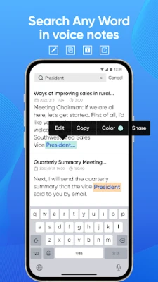 * Search & Playback: search any words in voice notes, playback at an adjustable speed