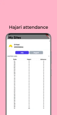 All the Labours added to the Labour Hajari app under a specific site can check their attendance with this app.