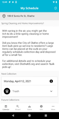 Never miss a trash day again! Receive customized waste and recycling schedules for the City of Olathe, KS. Receive collection reminders all from within this app. Plus, get helpful tips and information about trash, recycling, and responsible waste disposal.