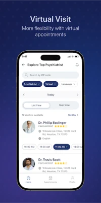 - Expert Care: Schedule virtual or in-person appointments with psychiatrists and therapists.