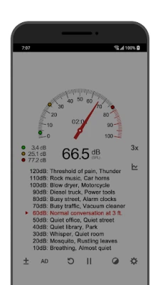 Sound level meter(or SPL) app is shows a decibel values by measure the environmental noise, displays measured dB values in various forms. You can experience tidy graphic design with high frame by this smart sound meter app.