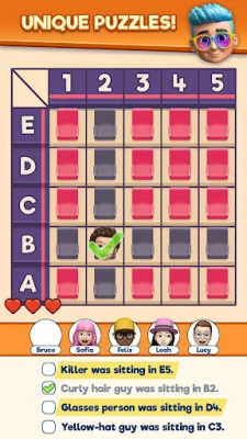 Welcome to 'That's My Seat - Logic Puzzle', the ultimate game to test your logical thinking and problem-solving skills! Each level presents a unique seating arrangement challenge where you must place characters according to specific rules. With a variety of settings including classrooms, buses, and restaurants, you'll enjoy endless fun while sharpening your mind.